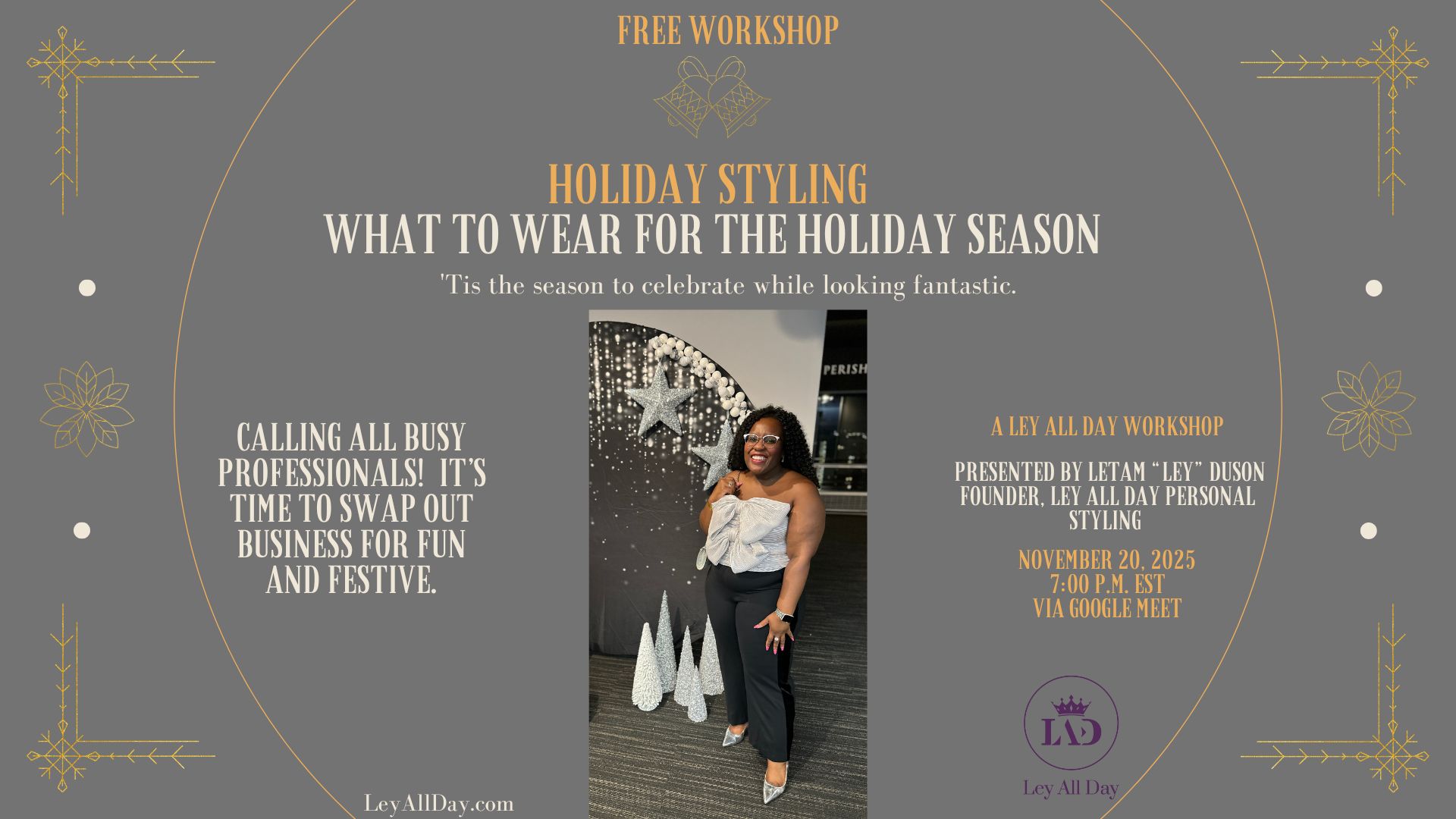 'Tis the season to celebrate while looking fantastic. Let's talk all things holiday styling. You won't want to miss this one. REGISTER HERE